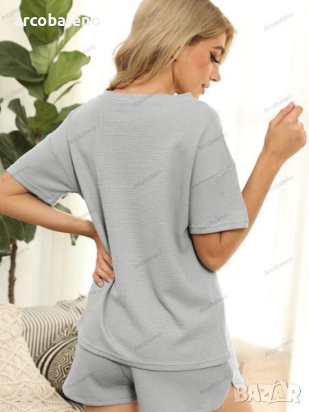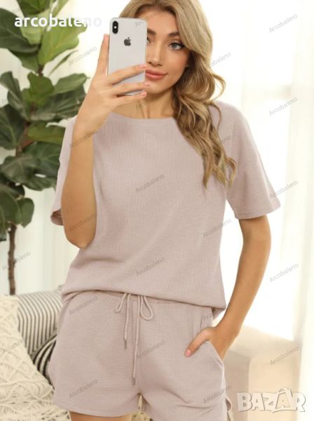 Дизайн: Отличаващ се с плътен цвят и небрежна вафлена текстура, този комплект от две части излъчва семплост и елегантност, идеален за излежаване у дома или изпълняване на задачи.
