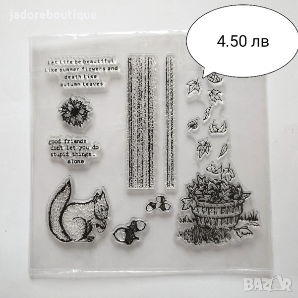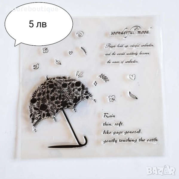 Силиконов печат за ембосинг и други техники за отпечатване на изображение върху хартия, картон, дърво и други. Използва се с помощта на акрилно блокче и мастило за печати.