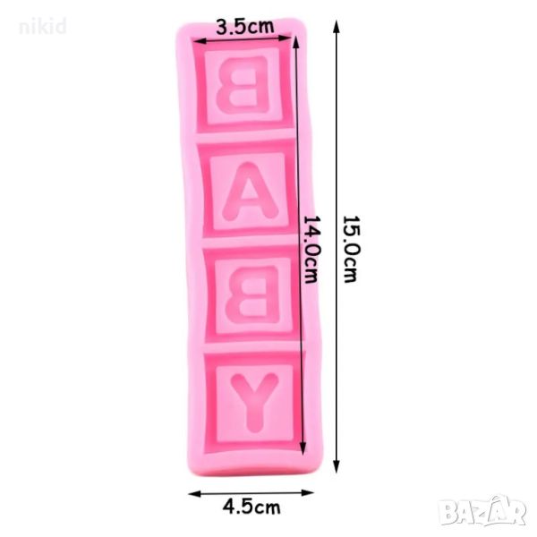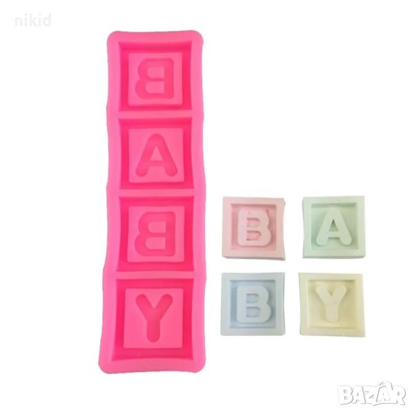 Baby кубчета букви в квадрат силиконов молд форма фондан шоколад бебешки пано декор → Обява 46128035