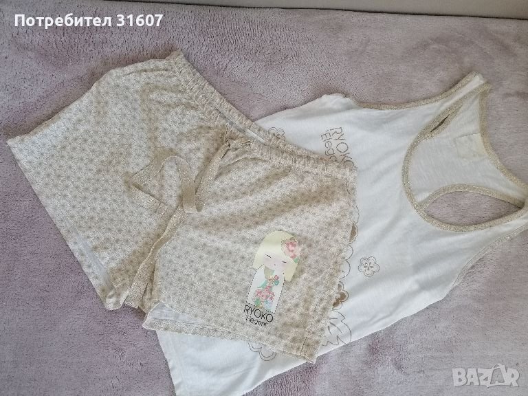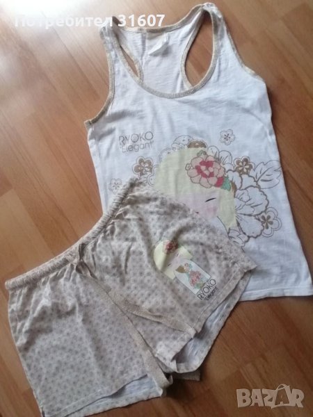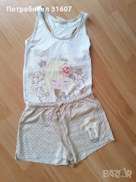 Симпатична лятна пижамка - къси панталонки и потниче с азиатски мотив. Размер С.