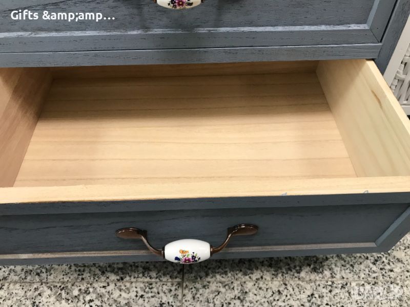 Дървено шкафче с две чекмеджета в сиво → Обява 46129812