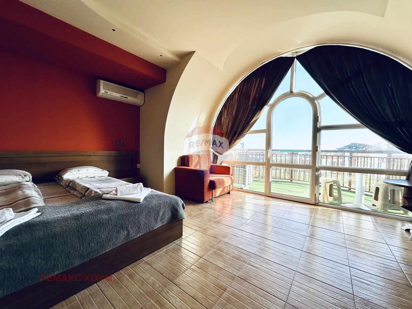 - просторна слънчева тераса с шезлонги и чадъри;