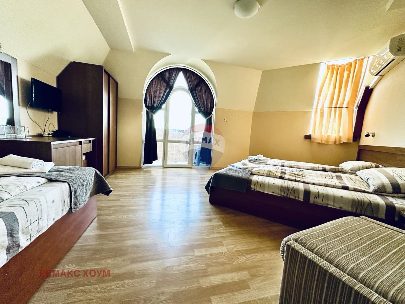 - хотелски стаи: осем двойни стаи, две тройни стаи;