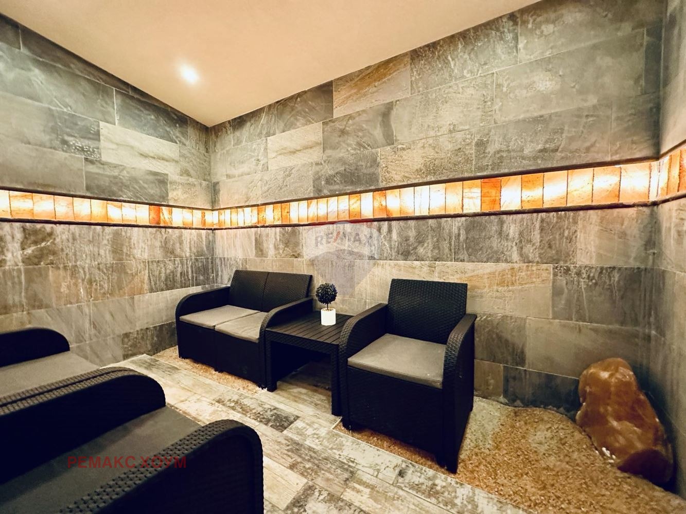 Spa центъра представлява комфортна и функционална релакс зона, която разполага със сауна, хамам, парна баня, джакузи, солна стая, студио за масаж.