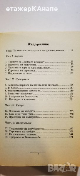 Авторът Джон Ман прекосява открай докрай някогашната империя и обръща специално внимание на конфликтите между китайци и монголци, които в еднаква степен тачат паметта на Чингис. Интерес за нас представлява, че в историческото си изследване англичанинът разглежда и сблъсъка между монголите и тюркските племена, основали през VI век ханство България. "Явно българите са се оказали твърде корави и монголите претърпели първото си и единствено поражение" - пише Джон Ман.