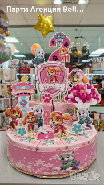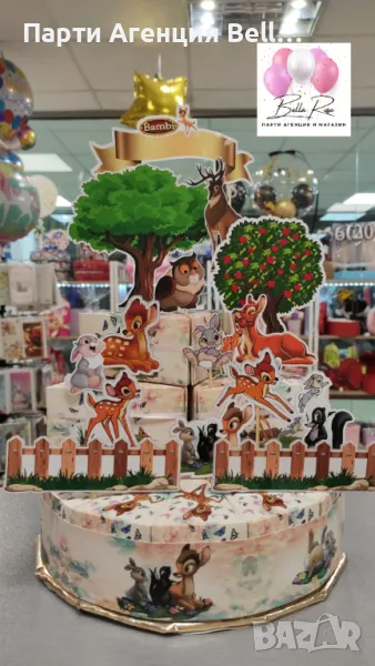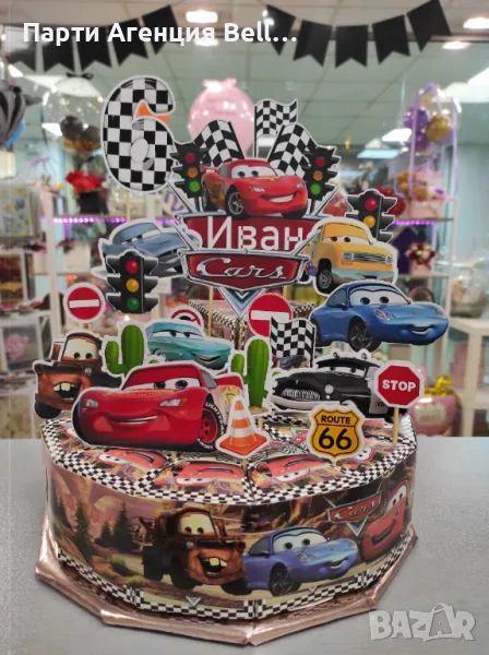 Можете да поръчате украса за тортата, която включва: Банер с името на детето и годинките, топери с анимационните герои и подложка към тортата на цена от 15 лв.