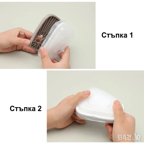 * Преди употреба, проверете маската, дали е добре запечатана и прилепва ли плътно на лицето Ви! Най-лесно може да направите това, като преди да поставите филтрите, сложете маската и запушете отворите с ръце. Ако е поставена правилно, няма да успеете да вдишате въздух!