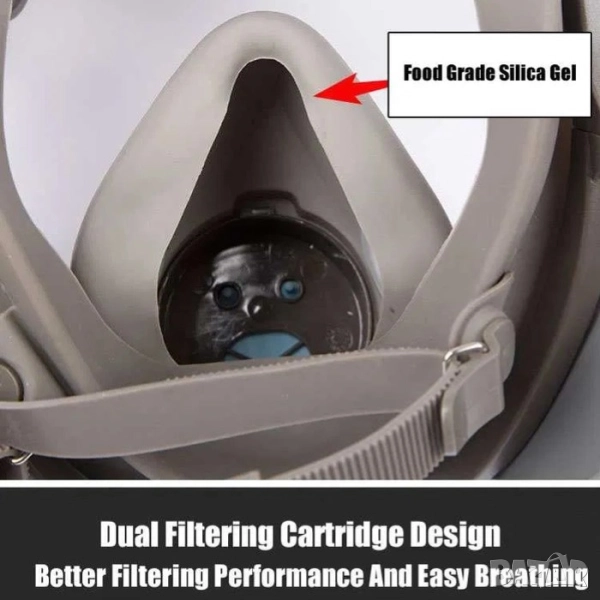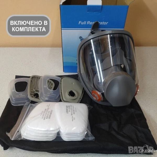Респираторна предпазна маска за цяло лице с филтри | Еквивалент на 3М 6800