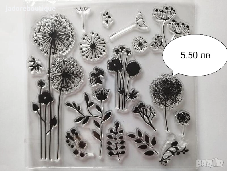 Силиконов печат за ембосинг и други техники за отпечатване на изображение върху хартия, картон, дърво и други. Използва се с помощта на акрилно блокче и мастило за печати.