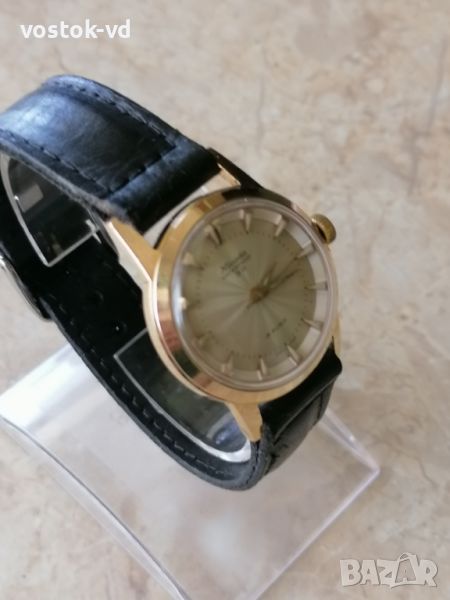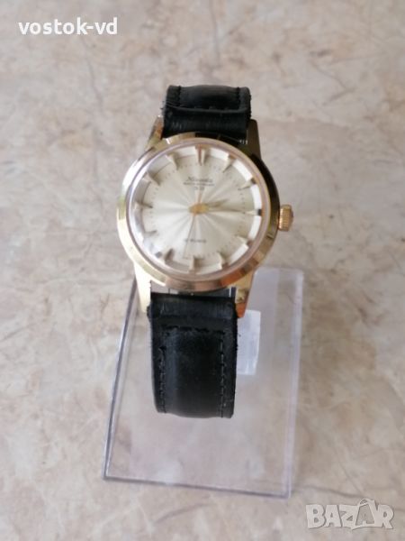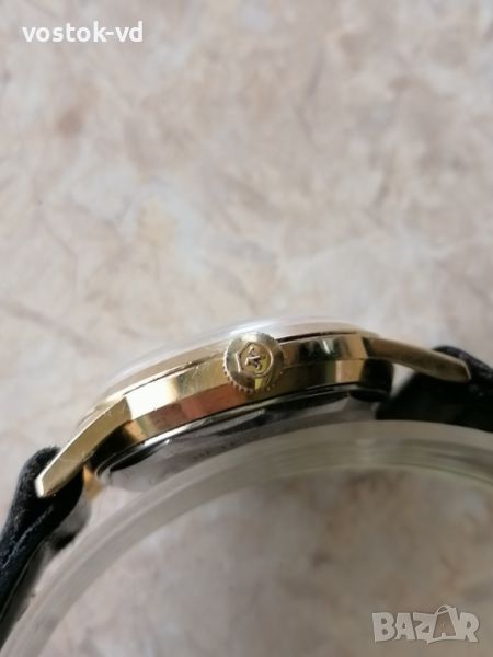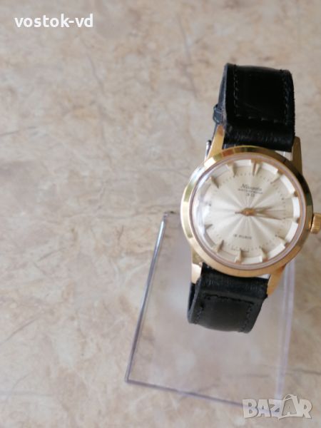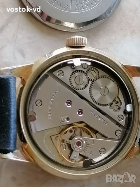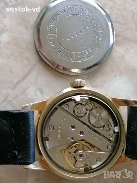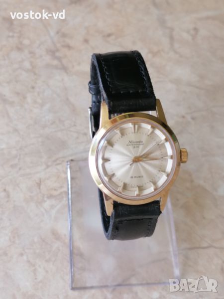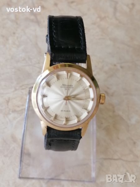 МЪЖКИ МЕХАНИЧЕН ЧАСОВНИК NIVADA 18 RUBIS, SWISS MADE, WATERPROTECTED, SCHOCKRESISTANT, ANTIMAGNETIC, ПОЗЛАТА НА КАСАТА, ДИАМЕТЪР НА КАСАТА 31мм,КОЖЕНА КАИШКА,МАРКИРОВКА НА КОРОНКАТА, ПЕРФЕКТНО СЪСТОЯНИЕ!