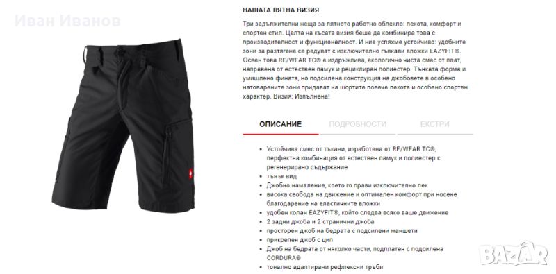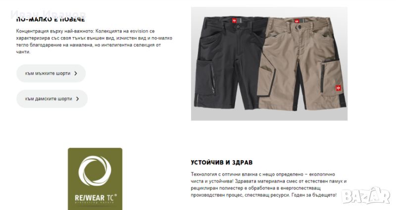 Три задължителни неща за лятното работно облекло: лекота, комфорт и спортен стил. Целта на късата визия беше да комбинира това с производителност и функционалност. И ние успяхме устойчиво: удобните зони за разтягане се редуват с изключително гъвкави вложки EAZYFIT®. Освен това RE/WEAR TC® е издръжлива, екологично чиста смес от плат, направена от естествен памук и рециклиран полиестер. Тънката форма и умишлено фината, но подсилена конструкция на джобовете в особено натоварените зони придават на шортите повече лекота и особено спортен характер. Визия: Изпълнена!
