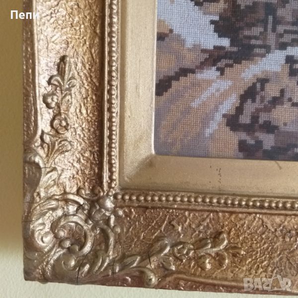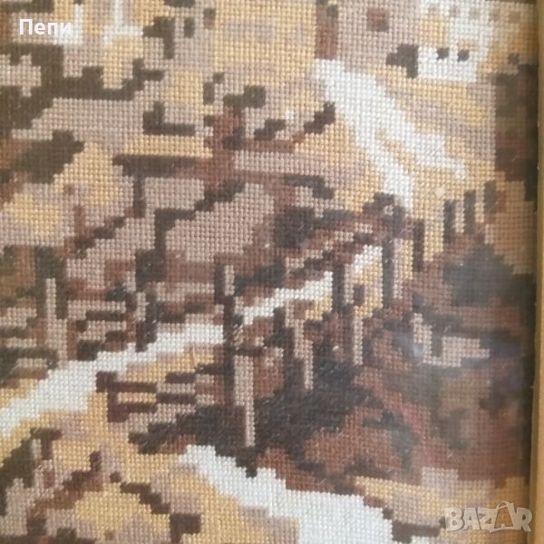 Ушит гоблен от каталог на Вилер, конци DMC. Външен размер с рамката 32/42 см. Само на шитата площ - 18/28 см. Конците са в бежова гама.