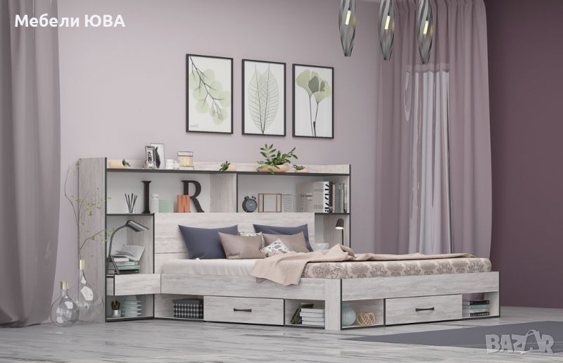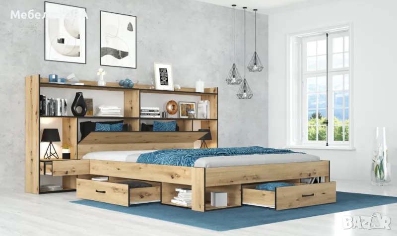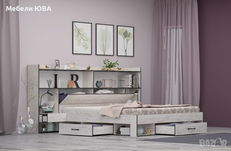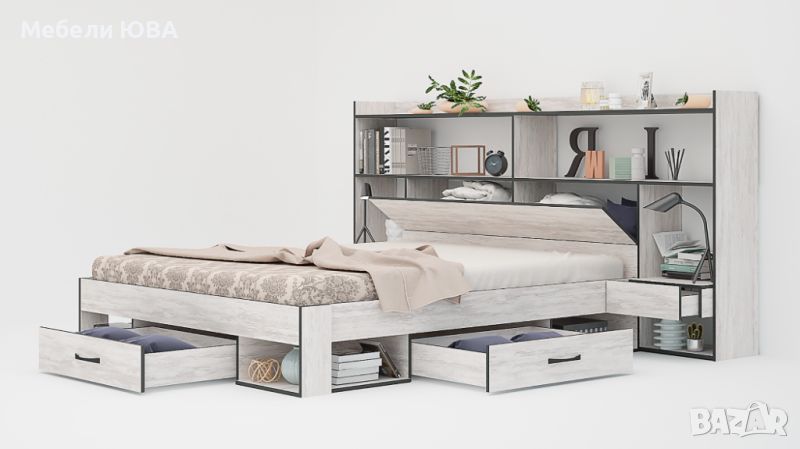 Легло ЛАЙТ с чекмеджета, ракла и надстройка за матрак 160/200 см