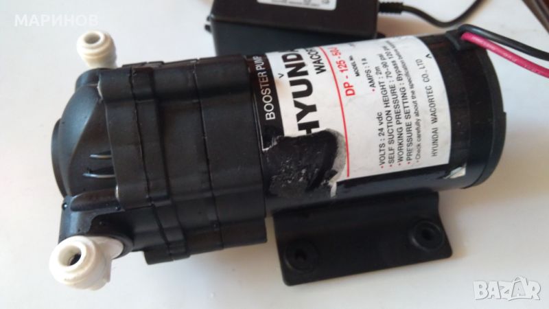 Водна диафрагмена помпа за машина за пречистване и филтриране на вода 24 волта има адаптор 220 в. 24 в. Проверена и обслужена помпата е Хюндай от филтрираща машина Хюндай характеристики има на снимките може и на акумулатор да работи безшумна и сама засмуква