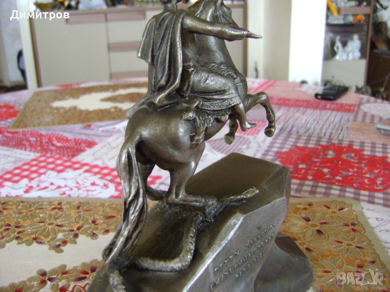 Умалено копие на известния паметник на Петър Велики от Санкт Петербург изработен е от френски скулптор