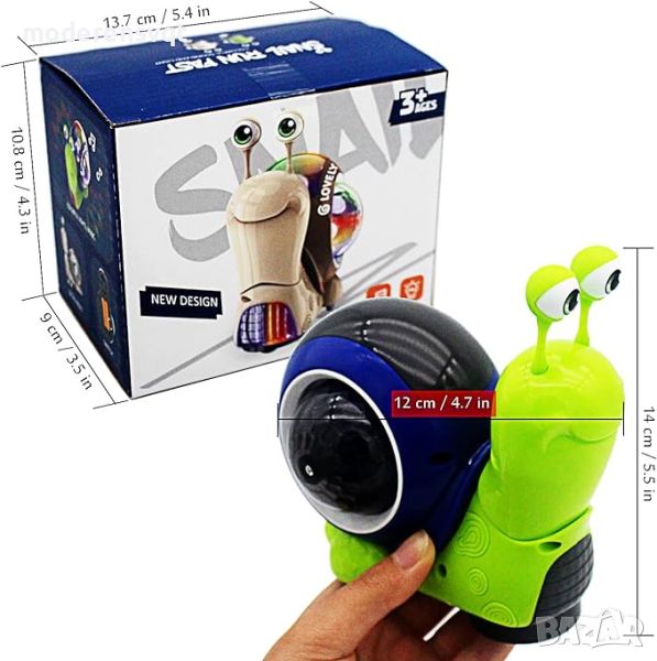 Пълзящият охлюв е музикална бебешка играчка, която е предназначена да стимулира развитието на малките деца. Играчката е изработена от мека и безопасна за децата материя, като е проектирана така, че да е лесна за хващане и манипулиране от малките ръчички на бебетата. Когато бебето пълзи след охлюва, той издава музикални звуци, които привличат вниманието на детето и му помагат да развие координацията между очите и ръцете. Пълзящият охлюв има ярки цветове и интересни текстури, които го правят забавен и атрактивен за бебетата.