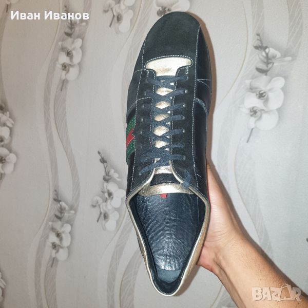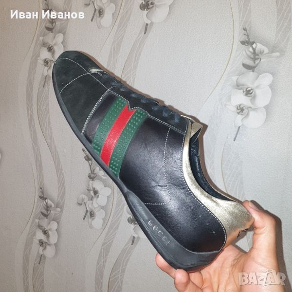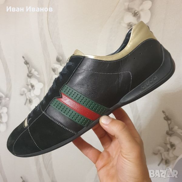 Мъжки маратонки GUCCI Classic Red & Green Stripes Leather Естествена кожа и набук . Спортно - елегантни обувки . 100 % оригинални Произведени в Италия Стил , класа , качество и дизайн . Цена по магазините над 800 лева . Дължина на стелката 30,5 см Малко използвани , с минимални следи , без забележки