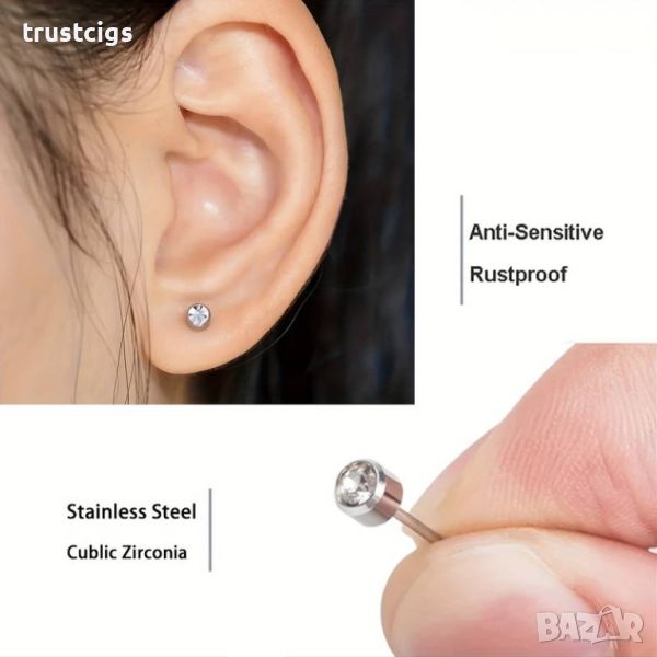 Включена медицинска обеца: В комплекта е включена висококачествена медицинска обеца от стомана, съвместима с най-популярните видове бижута за уши.