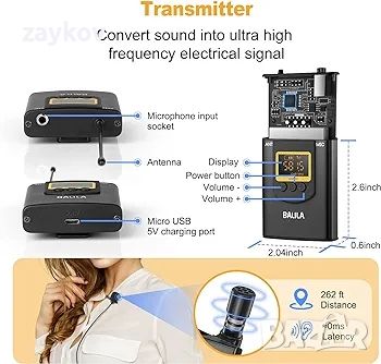 【ВГРАДЕНА АКУМУЛАТОРНА БАТЕРИЯ】 Вградена литиева батерия, идва с двоен Micro-USB кабел за зареждане, можете да зареждате и двете устройства едновременно. Екранът на LCD дисплея показва състоянието на батерията, честотите, състоянието на сдвояване, силата на сигнала за лесно наблюдение на процеса на запис. Иконите и шрифтовете са ясни и лесни за четене. Удобен за потребителя дизайн за по-добро изживяване при запис.