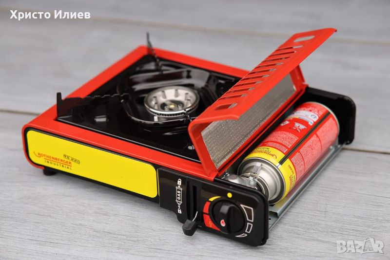 ROTHENBERGER RS 220 е удобен и лесен за пренасяне газов котлон за къмпинг, който предоставя възможности за готвене, независимо къде се намирате. Вградено е пиезо запалване за лесно стартиране. Газовият котлон ROTHENBERGER RS 220 работи с газова бутилка RoButane, която може лесно и безопасно да бъде свързана отстрани и отстранена след употреба. Газовата бутилка може да се извади дори и да не е напълно празна. Газовият котлон за къмпинг RS 220 се предлага в здрава и удобна за пренасяне кутия.