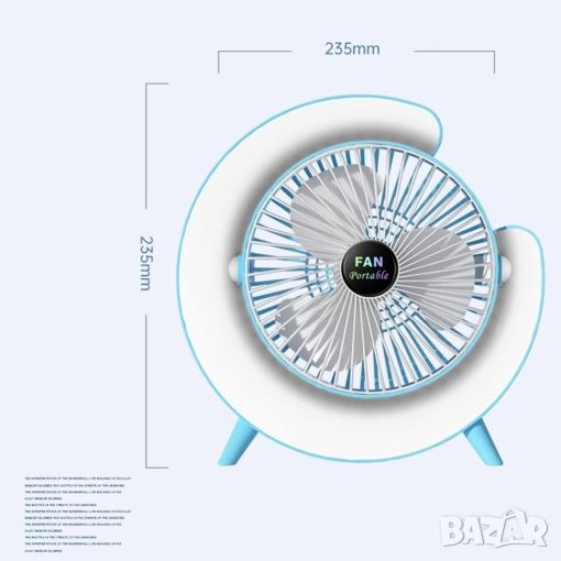 Модерен и компактен дизайн Неговият модерен и кръгъл дизайн, заедно с малките му размери, го правят идеален за всяко работно пространство, независимо дали е претъпкан офис или учебен кът у дома. Със стабилна основа и издръжлива конструкция, този мини вентилатор за бюро е готов да ви осигури прохлада, без да заема твърде много място.