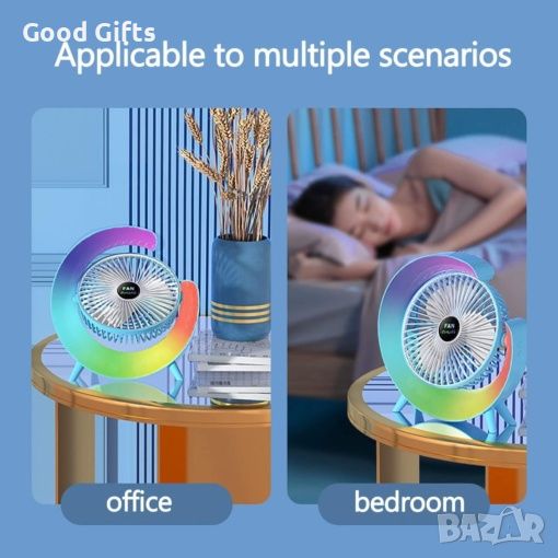 Добавете свеж бриз и пръскане на цвят към вашето работно пространство с нашия нов кръгъл мини вентилатор за бюро, оборудван с RGB светодиоди. Този компактен, но мощен аксесоар ще ви осигури необходимия топлинен комфорт в офиса или дома, обогатявайки атмосферата с приятна околна светлина.