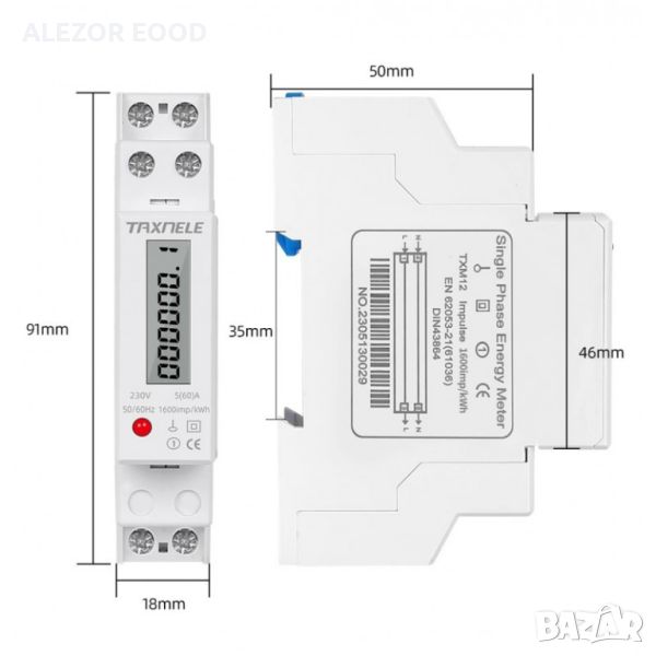 електромер, еднотарифен за DIN шина 250V / 50Hz