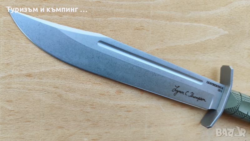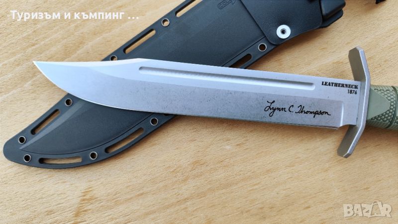 Lynn Thompson Leatherneck Bowie е изключителна версия на Leatherneck Bowie. Широкото острие е направено от стомана D2 и е дълго 26,7см .