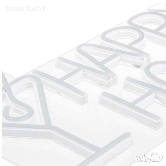 Прозрачен панел с розова, зелена, бяла и жълта led неонова светлина "Happy Hour" с коктейли. Можете да го закачите от 2-те слота, които има в горната част, или просто да го поставите където пожелаете. С 1,8 м USB кабел. Напрежение на тока: 1A. Мощност: 0.06W. DC напрежение: 5V.