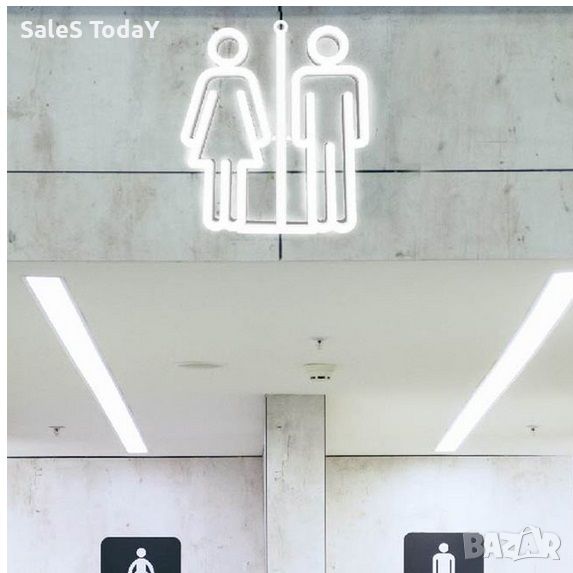 Бяло пано с led неонова светлина "Табелка за тоалетна". Можете да го закачите или просто да го поставите където пожелаете. С 1м USB кабел. Напрежение на тока: 1A. Мощност: 0.06W. DC напрежение: 1A.