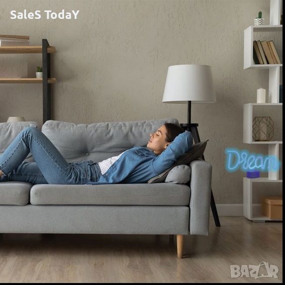 Светеща табела за бюро, Мечта, син LED неон, "Dream" и USB 32x17cm