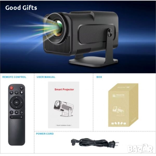 Видео проектор HomeLife® Hy320, Smart 4K Ultra HD с WiFi6, вграден високоговорител, автофокус, Bluetooth 5.0, LED, регулируема проекция до 130” инча, въртяща се рамка на 180 градуса