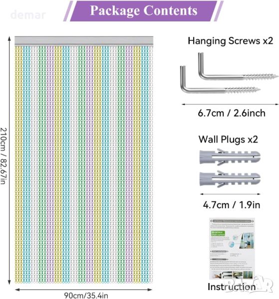 Мрежата против мухи за врати с 69 алуминиеви вериги ефективно предотвратяват навлизането на насекоми, комари, оси, мравки и птици, като същевременно позволяват свеж въздушен поток. Подходящи за повечето стандартни врати, тези издръжливи, неизбледняващи, антикорозионни паравани разполагат с пердета от неръждаема стомана за максимална здравина. Лесни за инсталиране, поддръжка и премахване, веригите могат да се регулират до желаната дължина. Практични и стилни, те помагат за разделяне на пространствата и са идеални за ресторанти, кафенета, барове, пекарни и др. Завесата тежи 3,8 кг, с размери 90 см ширина и 210 см височина, а връзките са 12 мм х 24 мм, регулируеми за перфектно прилягане.