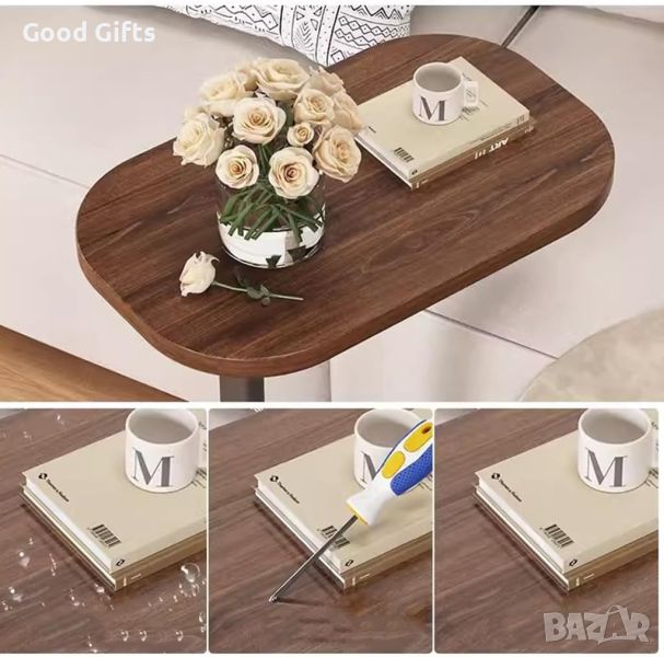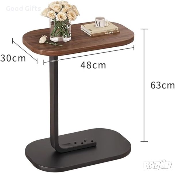 Дизайн: C-образната структура позволява масичката лесно да бъде плъзната под диван или кресло, предоставяйки удобно място за поставяне на напитки, книги или лаптоп.