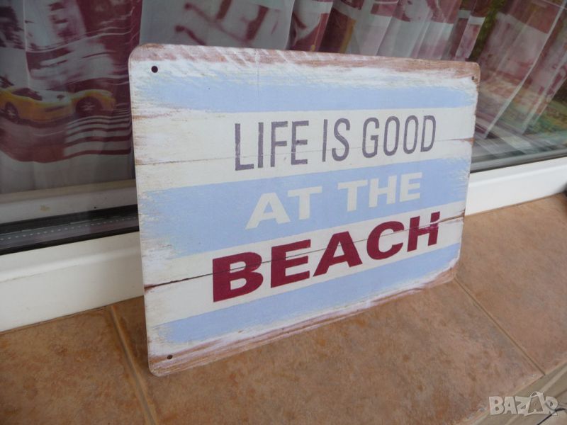 Метална ламаринена табела - Life is good at the beach.