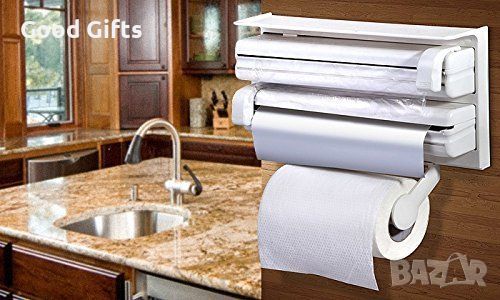 3в1 Органайзер за кухня за домакинска хартия, фолио и стреч