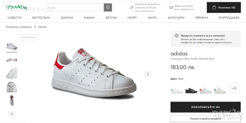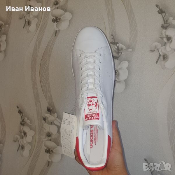 Чисто нови , с етикетите . Номер който е по поръчка и няма къде да се намери , Красиви , леки , удобни . АВТЕНТИЧНА ВЕРСИЯ НА ЕМБОЛНАТА ТЕНИС КЛАСИКА ОТ 1971 г.Руло с класиката. Навремето Стан Смит печелеше много на тенис корта. Плъзнете се в обувката на Adidas, достойна за неговото име, и ще спечелите много по улиците. Отгоре надолу, тези обувки улавят основния стил на оригинала от 1971 г., с минималистична кожена конструкция и изчистена тапицерия.Стандартно приляганеДантелено закопчаванеКожена горна част Вечнитенис маратонкиКожена подплата и OrthoLite® чорапГумена подметка