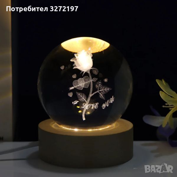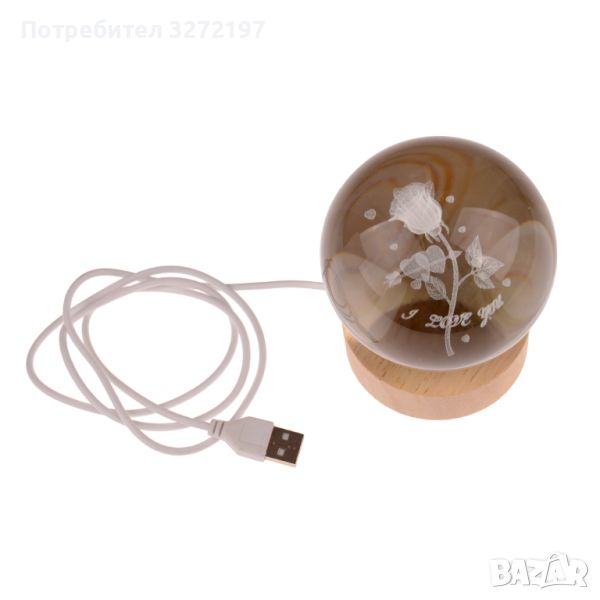 LED Светеща кристална топка/лампа, 3D сензорна - Роза с надпис I Lоve Yоu