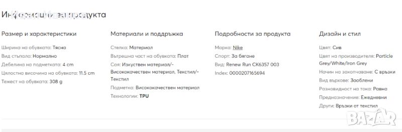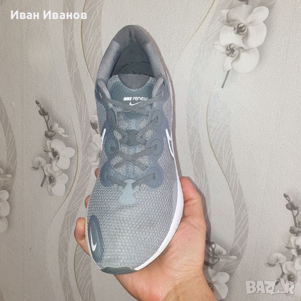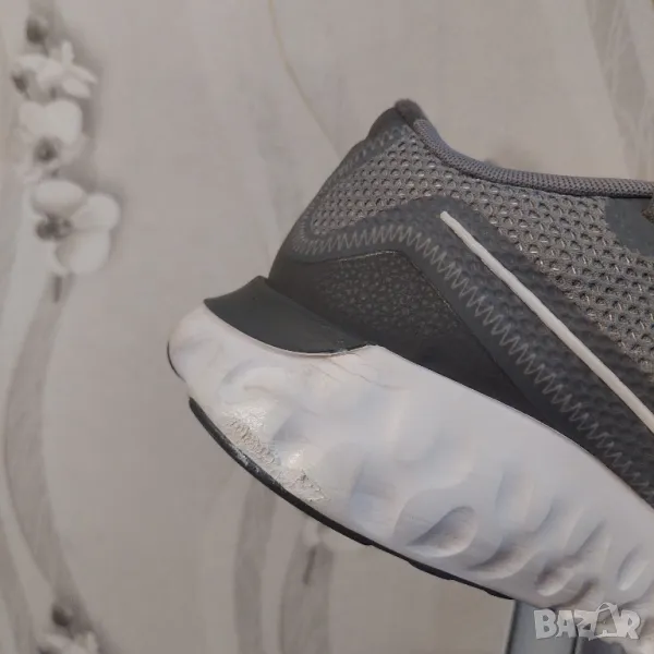 маратонки Nike в сив цвят с контрастни детайли, изработени от висококачествени материали. Лекият плетен материал осигурява поддръжка и дишане. Името на марката е пришито отстрани на обувката. Nike Renew Run доставят комфорт и сигурност. Гумената подметка с вълнообразен модел осигурява трайно многопосочно сцепление за бързо спиране и тръгване. Обувките са перфектния избор както за спорт, така и за ежедневието. Много добре се съчетават с дънки, клин или спортен панталон. Мъжките маратонки Nike са леки, дишащи маратонки, предназначени за вашата тренировка. Опростената горна част се отличава с динамичен дизайн, който пасва удобно на крака ви, докато връзките улесняват персонализирането на кройката. Междинната подметка от пяна абсорбира удара, докато гумената подметка осигурява сцепление върху твърди повърхности.Мрежата в предната част на обувката осигурява дишане.Гумената подметка осигурява издръжливост и сцепление.