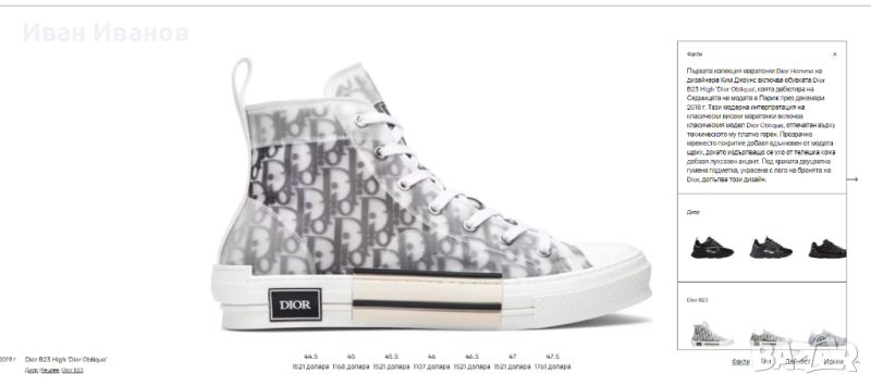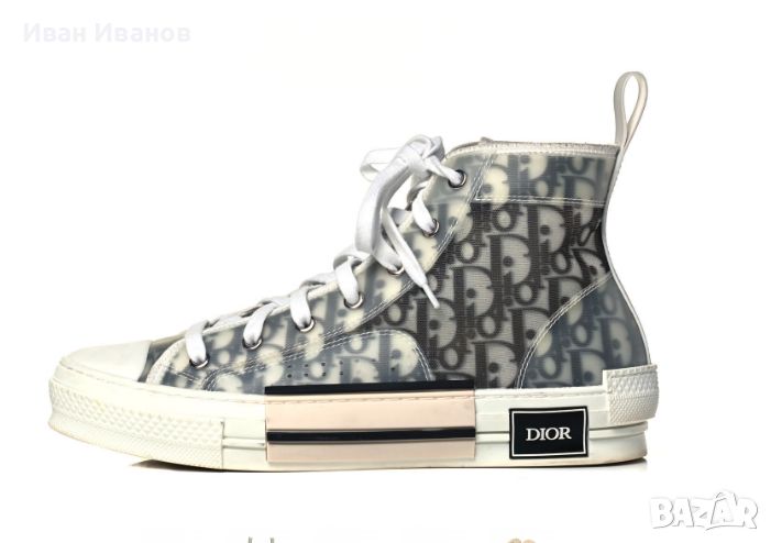 Това са автентични / оригинални дамски високи маратонки CHRISTIAN DIOR Technical Canvas Oblique B23, размер 40.Използвани броени пъти , като нови Цена по магазините над 1000 лева Прозрачната обшивка и бяло-черният наклонен мотив Dior придават на Dior B23 High Top Logo Oblique уникален външен вид.Изключително важните части на Dior B23 High Top Logo Oblique — включително задна част, заоблен и подсилен пръст, бяла и бежова гумена подметка, предна дантела и капси — следват кодовете на класическия висок топ дизайн. Също така, контрастни детайли отстрани подчертават обувката с подпис "DIOR". Освен това е украсен с подплата от микрофибър със заварена, странично зашита конструкция.
