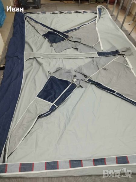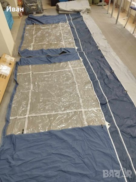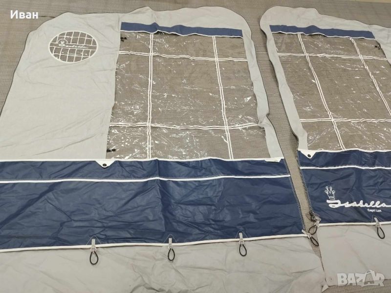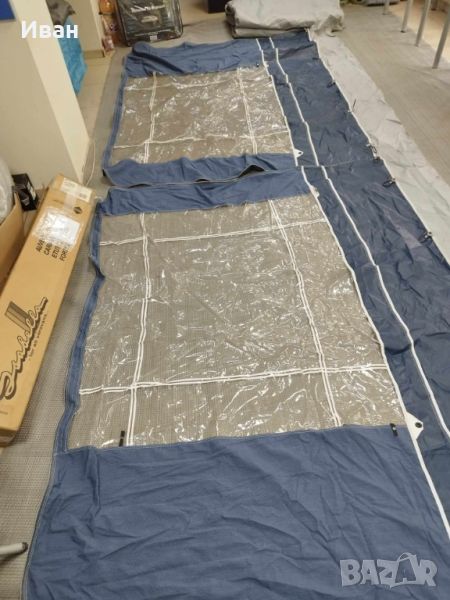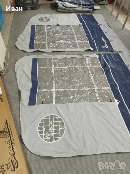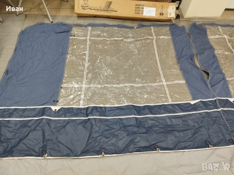 Прекрасен форселт на най-добрата марка в бранша Isabella. В отлично състояние, почти като от магазина. Бил е демо модел във външен шоурум за седмица. Само много незначителни следи от изцапано по калобранните поли. Напълно окомплектован! Светли, кристално чисти прозорци. Отлични ципове. Конструкцията без никакви следи от използване. С дишаща непромокаема четири сезонна материя на страниците и дебел винилов покрив. С удебелена калобранна пола. С двупосочни ципове позволяващи отварянето на всички страници, както отгоре-надолу, така и странично,позволявайки да се образува веранда. Освен това могат да се премахват и изцяло. Двата панела отстрани също позволяват да се образуват врати. Може да се обособява врата на всяко място, както отпред така и от двете страни. Олекотена, здрава конструкция с черни карбонови рейки. С комплект пердета. С пола против течения за под караваната. С елиминатор за гумата. С пети за