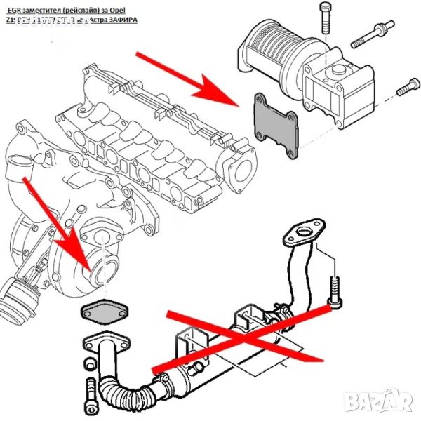 EGR заместител (рейспайп) за Opel Z19DTH Z19DTJ ЕГР Опел Астра ЗАФИРА