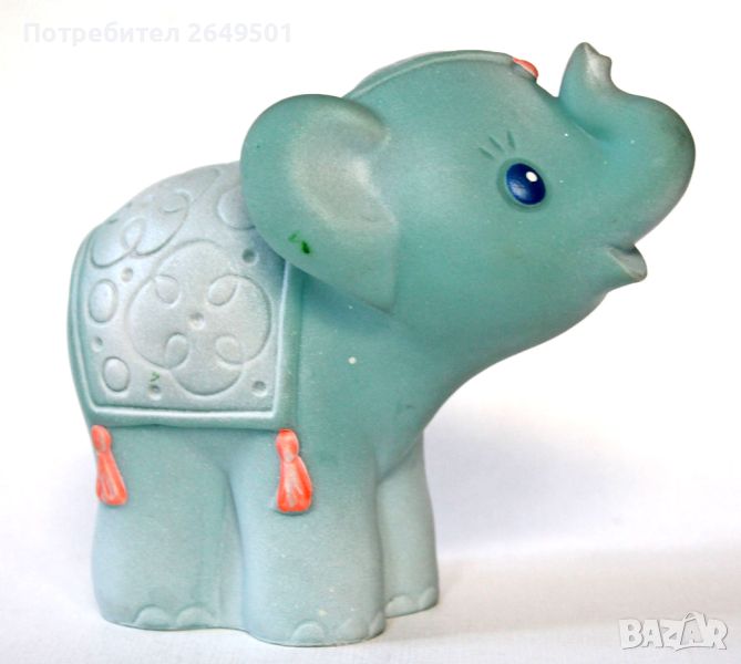 1970те СССР Руска соц. играчка Гумено Цирково Слонче. Перфектно качество. Минт. Има маркировка на фабриката производител върху основата. Като се стисне пищи. Размер 14см. дължина. Височина 12.5.