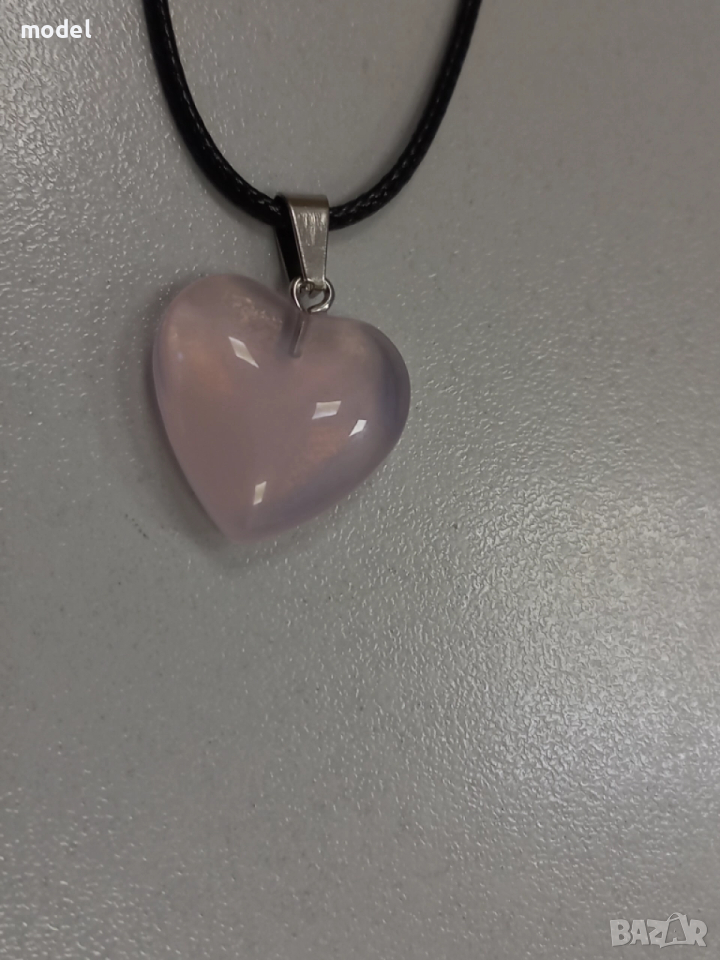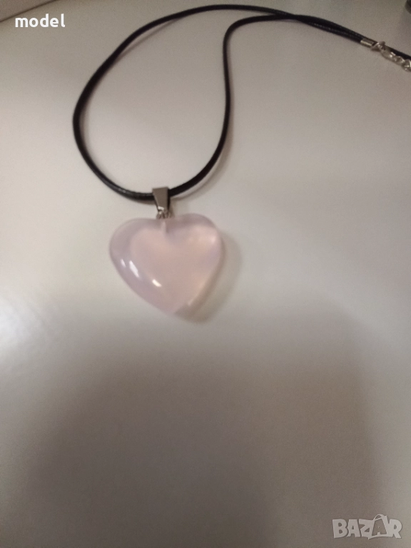Сърце Розов кварц на кожена каишка в комплект с гривна