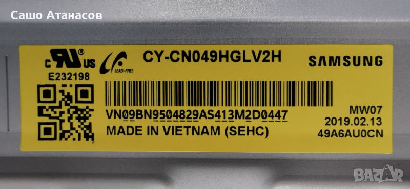 SAMSUNG UE49RU7372U със счупена матрица ,BN44-00932N ,BN41-02703A ,CY-CN049HGLV2H ,Y19 VNB V0.3