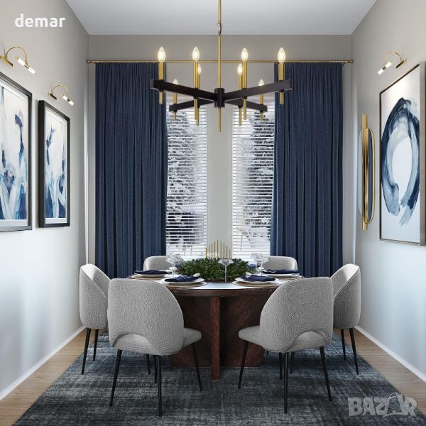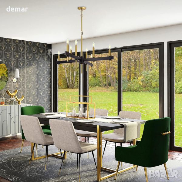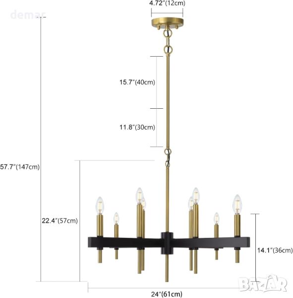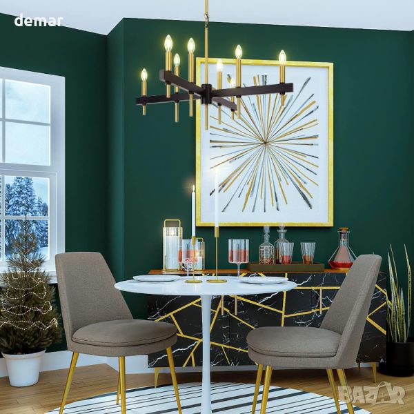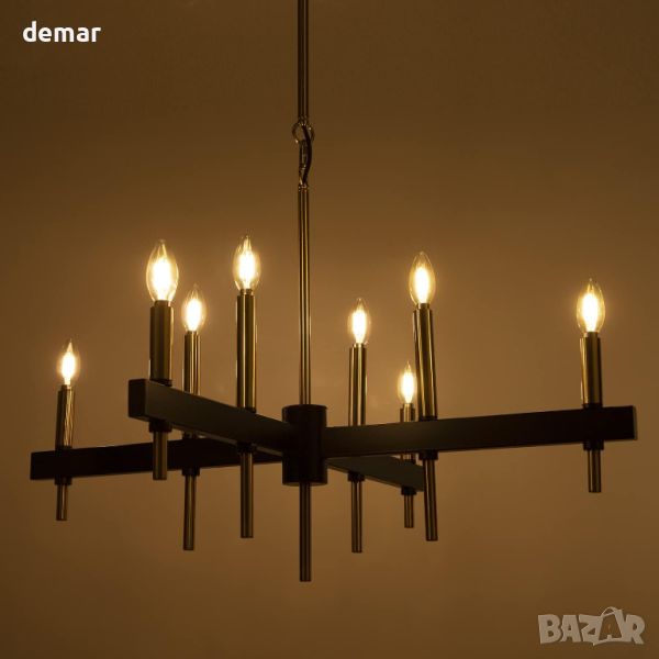 Включете градския стил във вашето жилищно пространство с този елегантен кръстосан полилей с 8 светлини, включващ свещи с месингово галванично покритие. С размери 61 см в диаметър и 57 см височина, с регулируеми пръти за максимална височина от 147 см, той пасва перфектно на различни пространства. Съвместим с 8 E14 крушки (макс. 60 W, не са включени), включително димируеми LED, енергоспестяващи и халогенни крушки. Лесен за инсталиране с предоставените инструкции, той е идеален за всекидневни, спални, фоайета, кухненски острови, маси за хранене, коридори и входове.