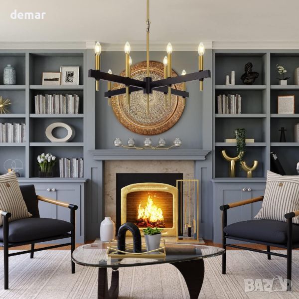 TOCHIC Черно-златен метален кръстосан полилей със свещи, 8 лампи