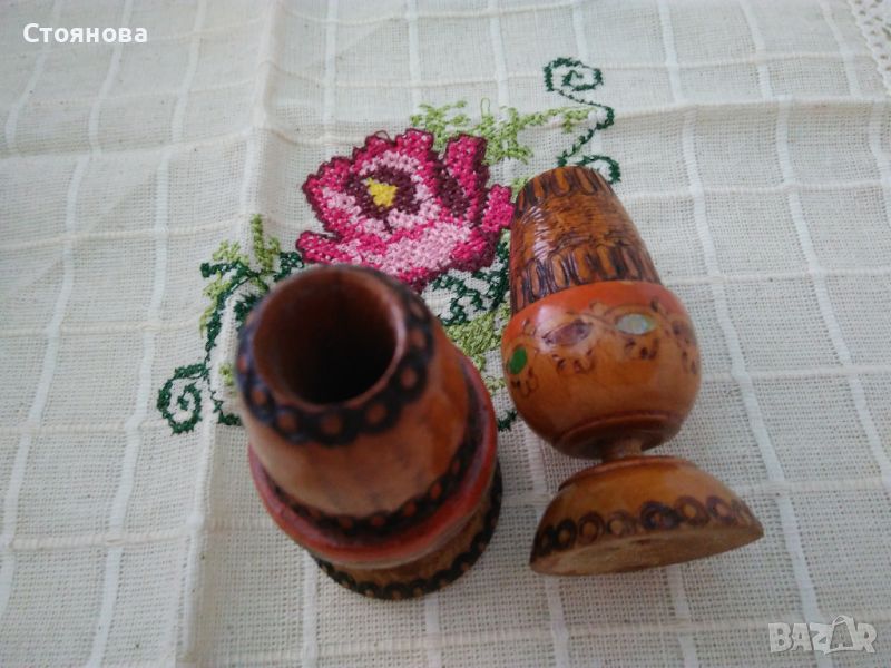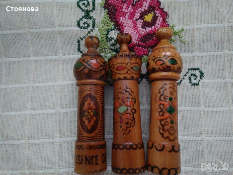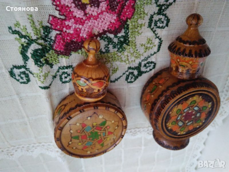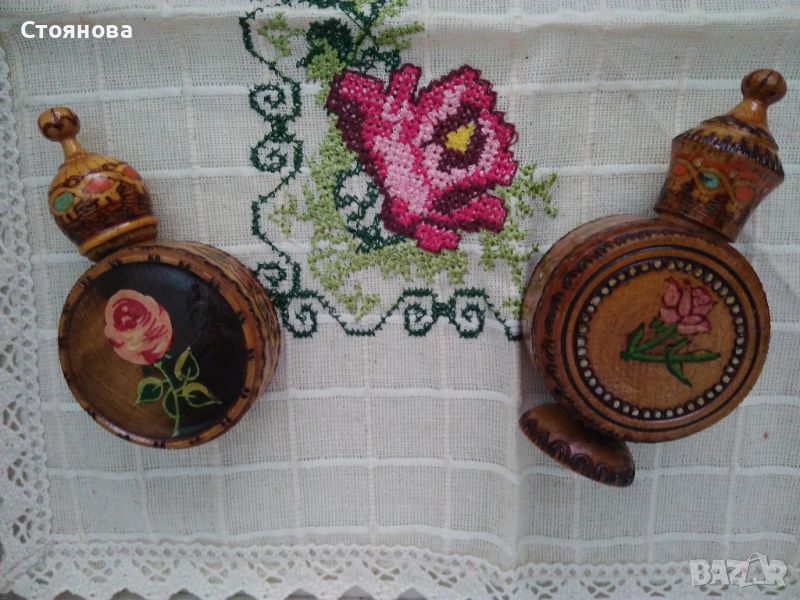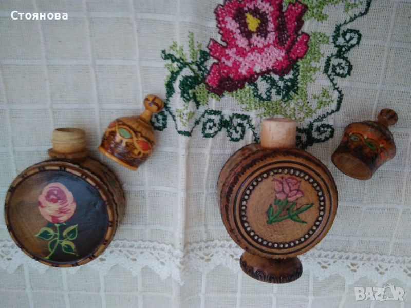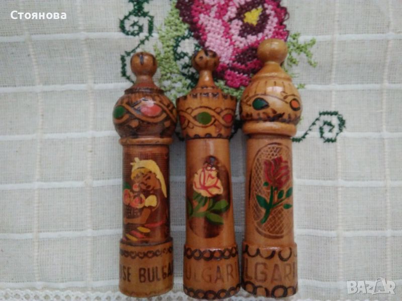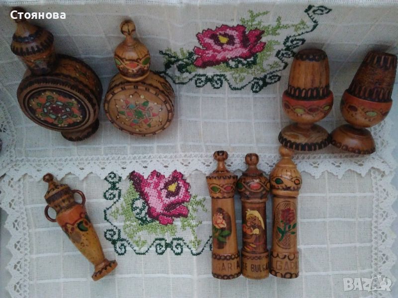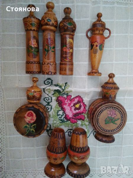 Продавам оригинални дървени сувенири, "Българска роза" мускали, бъклички, чаши от 50-те и 60-те години на миналия век, ръчно рисувани и пирографирани в много добро състояние, показано на снимките.