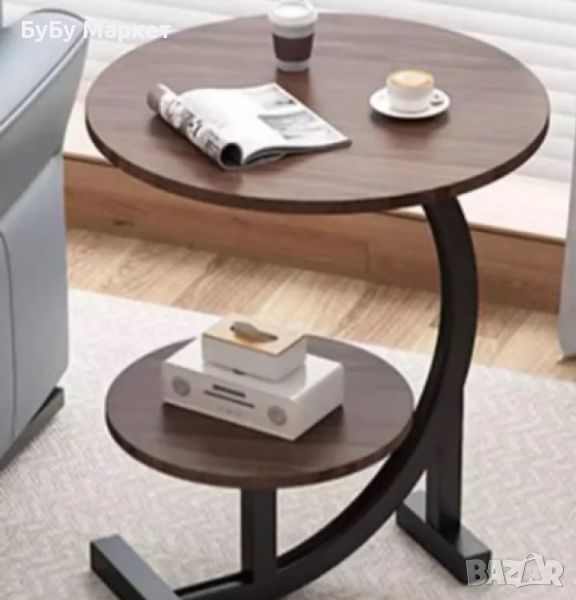 Добавете стил и функционалност във вашето пространство с нашата помощна масичка с две нива. Тя е перфектното решение за всеки, който търси елегантно и практично допълнение към своя дом или офис. Изберете качество и комфорт с нашата помощна масичка! Размери: Височина 60см/Диаметър на горния плот 40см/Диаметър на долния плот 30см; Плот: Висококачествен MDF с дървесен финиш; Основата: Метал с прахово покритие; Тегло: 5 кг; Цвят: Тъмен орех за плотовете, черен за основата.