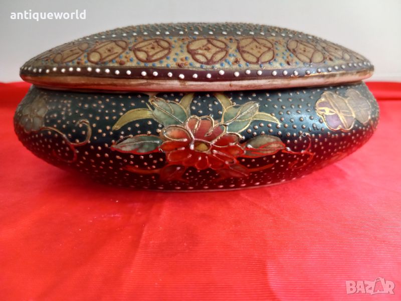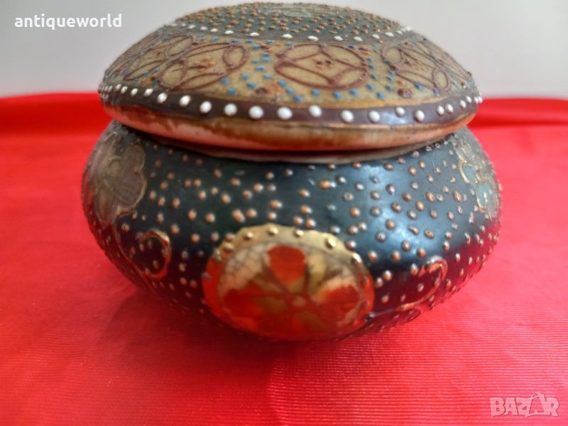 Стара Много Красива Ръчно Рисувана Порцеланова Кутия За Бижута SATSUMA . Маркирана!